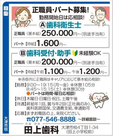 それに伴い、新規に歯科衛生士、受付・歯科助手を募集いたします。